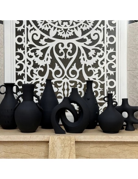 Chaque vase de cette collection est le fruit d’un savoir-faire artisanal traditionnel, façonné avec soin par des artisans passionnés. Sa texture douce et son coloris noir authentique apportent une chaleur instantanée à votre intérieur, que vous choisissiez de l’utiliser seul ou d'y ajouter vos fleurs ou plantes préférées.