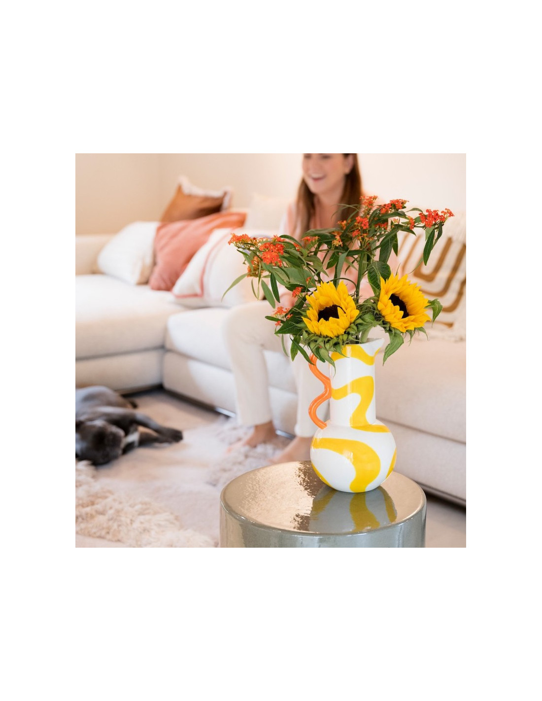 Cruche céramique Violeta - Spanish Swirls : une cruche jaune et blanche qui apportera une touche de couleur et de modernité à votre intérieur. Utilise-le pour y mettre vos fleurs ou en simple élément de décoration.