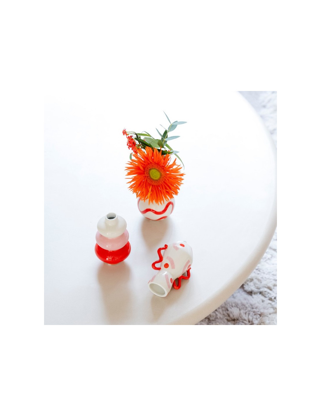 Vase céramique : un vase dans rouge et blanc qui apportera une touche de couleur et de modernité à votre intérieur. Utilise-le pour y mettre vos fleurs ou en simple élément de décoration.